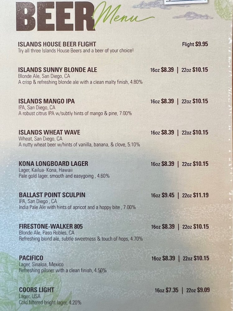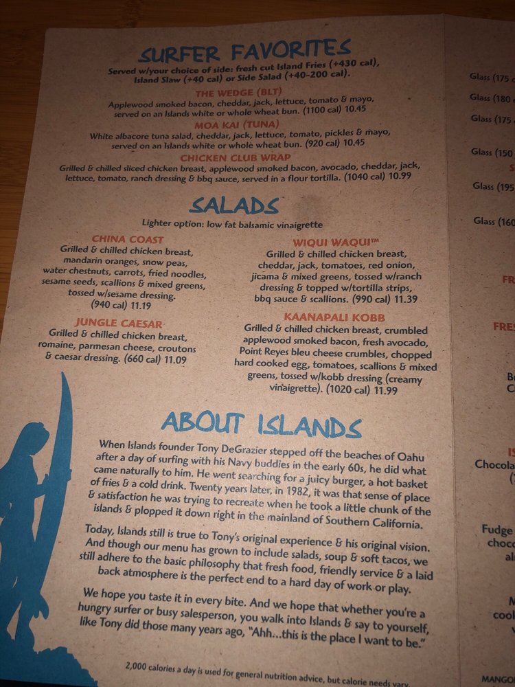 Nestled in the heart of Mission Viejo, Islands Restaurant offers a vibrant take on American cuisine, primarily sticking to their beloved burger roots. With a menu that features crowd-pleasers like the Shorebird chicken burger and the flavorful Pipeline burger topped with chili, this spot is a haven for burger enthusiasts. Vegetarians will also find joy with a variety of options, including fresh salads like the Chinese Coast Salad and the Kaanapali Cobb.